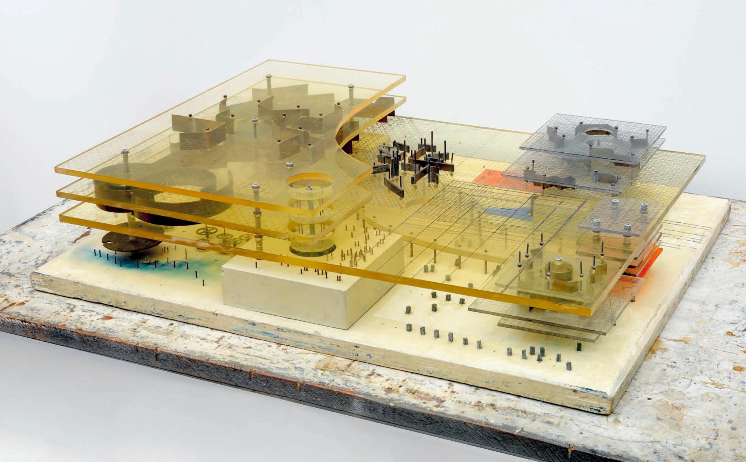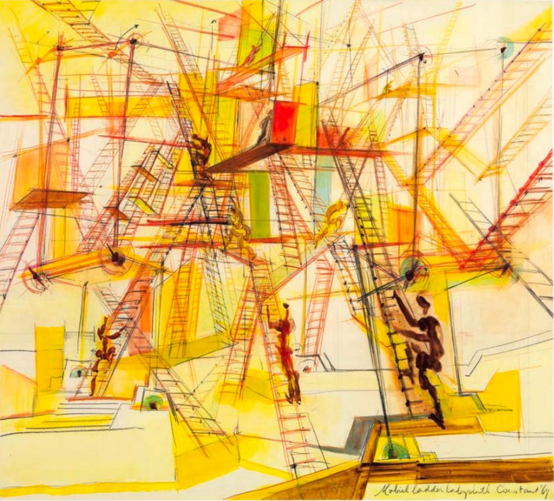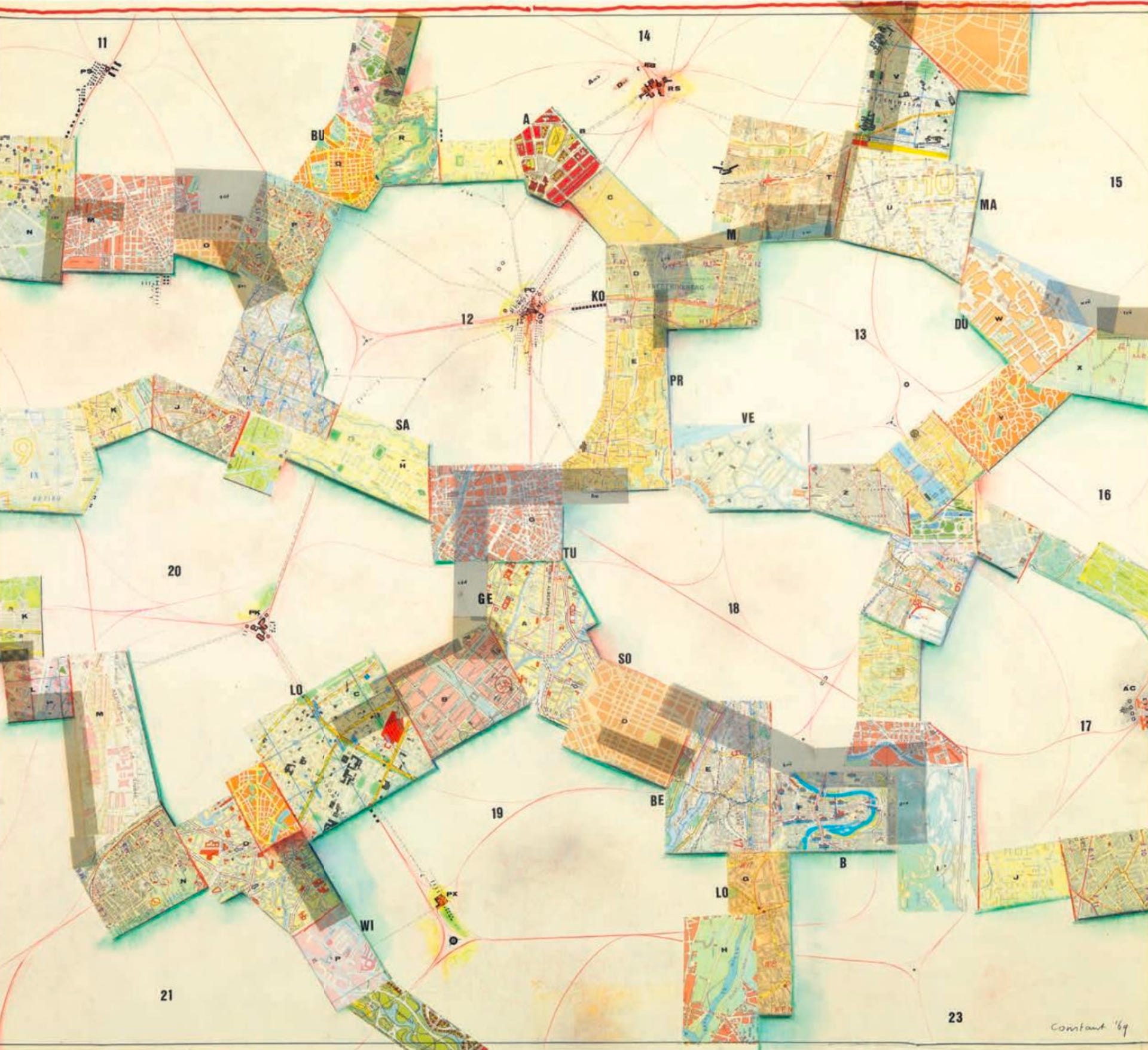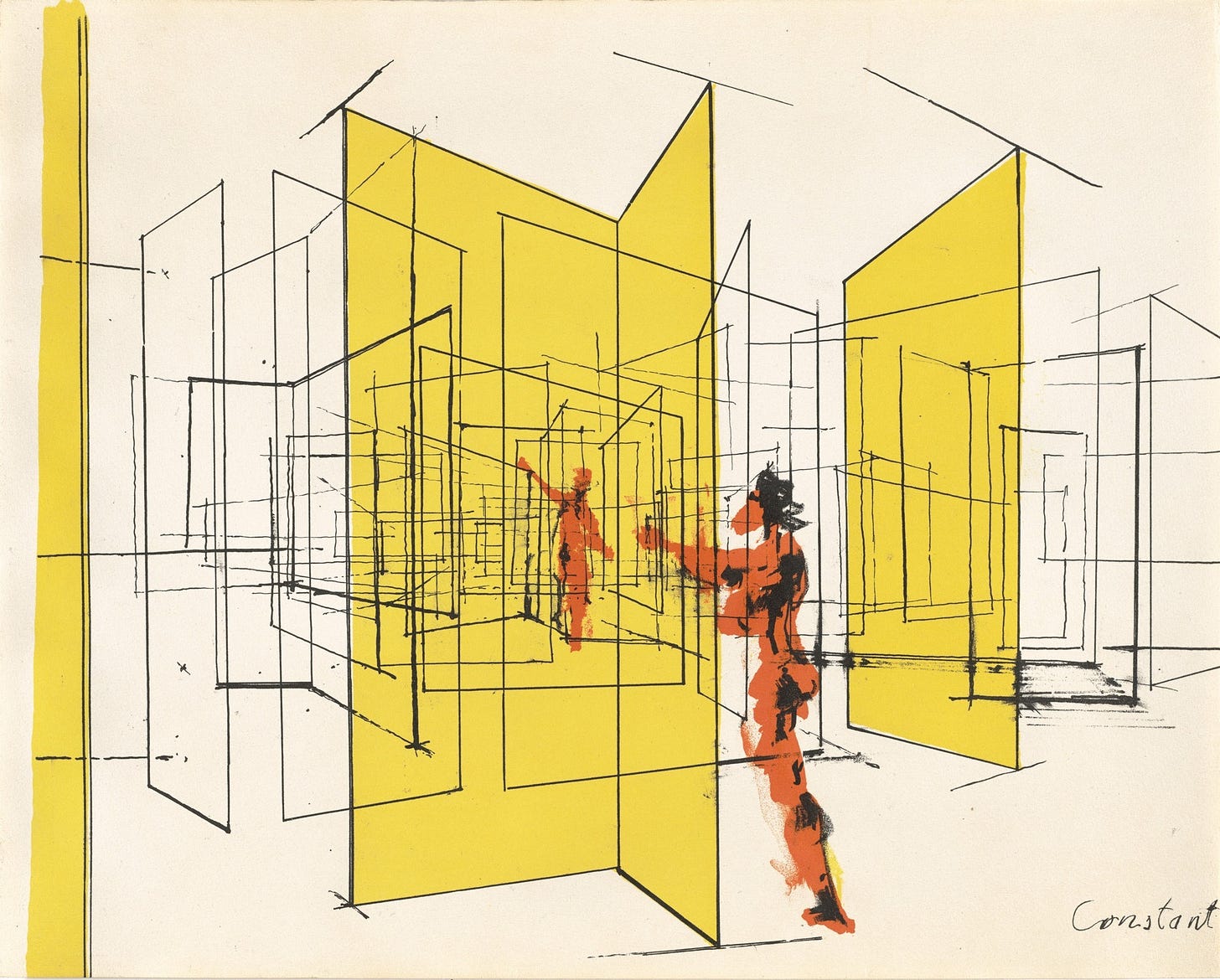 For almost twenty years, Constant (Constant Anton Nieuwenhuys, Amsterdam, 1920 – Utrecht, 2005) realised scale models, paintings, drawings and collages displaying his concept of a nomad city of the future – New Babylon – a complex and expansive labyrinth that transformed the whole world into one sole network. The earth would be collective property, work would be completely automated and run by robots and people would have the freedom to devote their time to creative play.