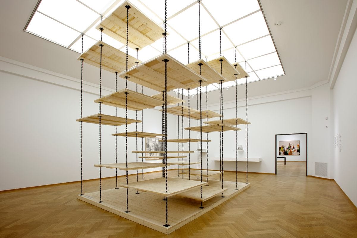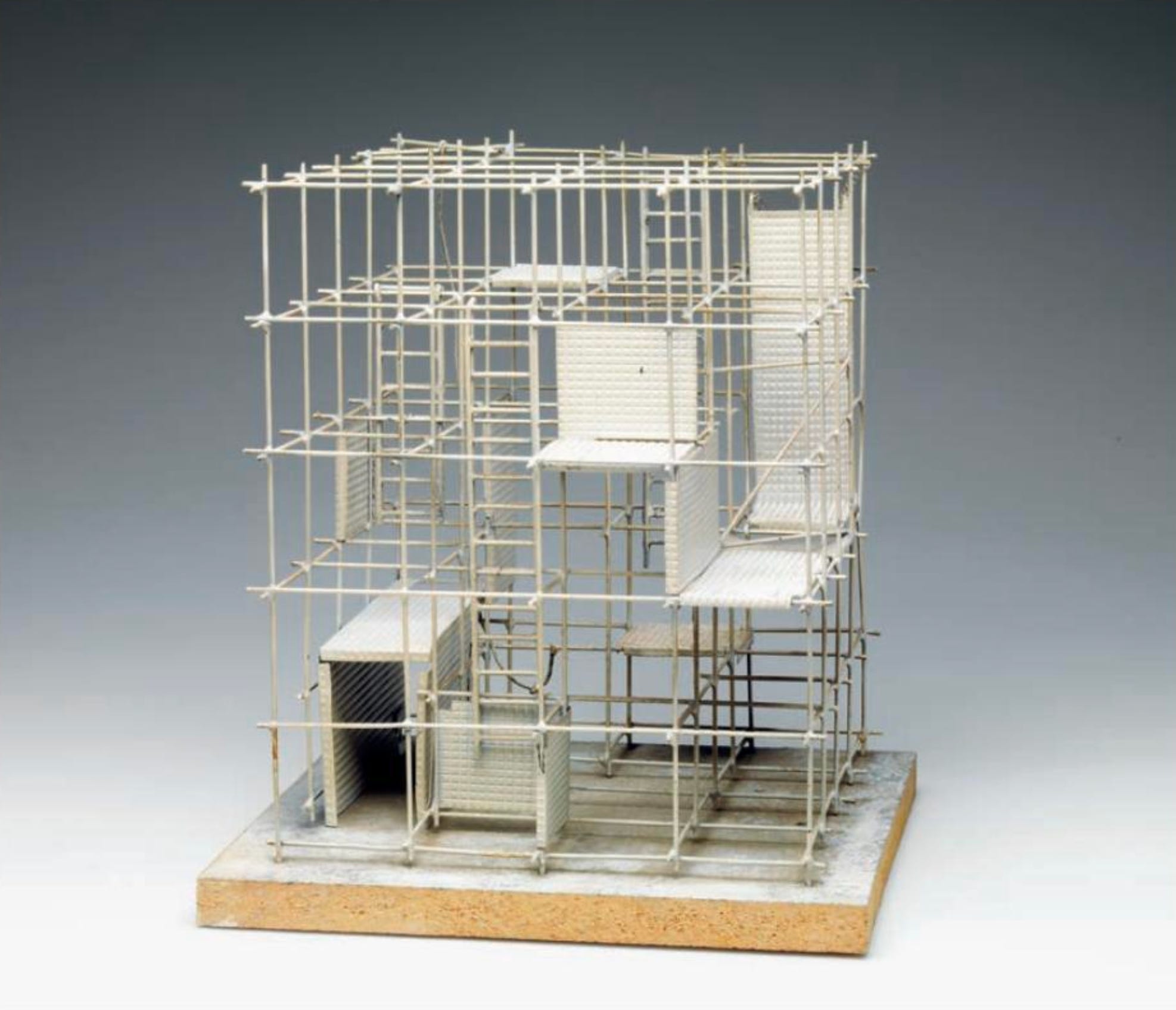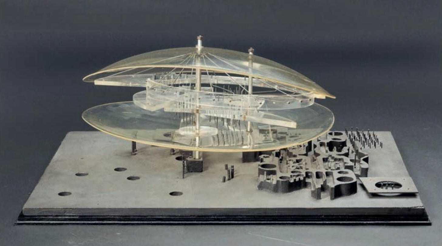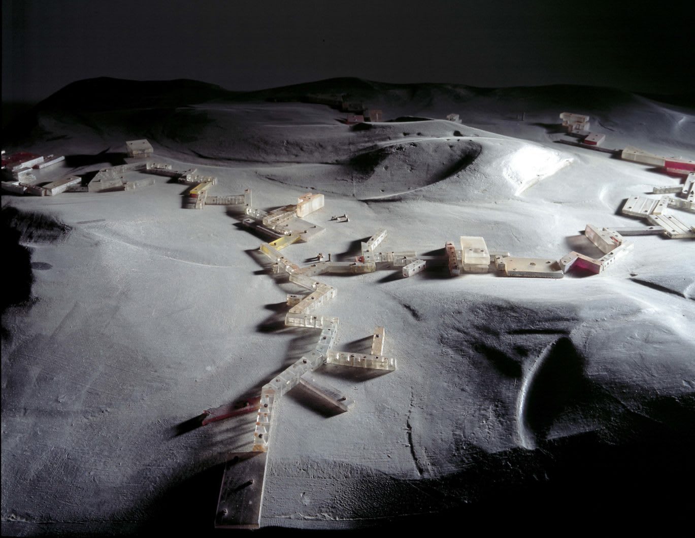 For almost twenty years, Constant (Constant Anton Nieuwenhuys, Amsterdam, 1920 – Utrecht, 2005) realised scale models, paintings, drawings and collages displaying his concept of a nomad city of the future – New Babylon – a complex and expansive labyrinth that transformed the whole world into one sole network. The earth would be collective property, work would be completely automated and run by robots and people would have the freedom to devote their time to creative play.