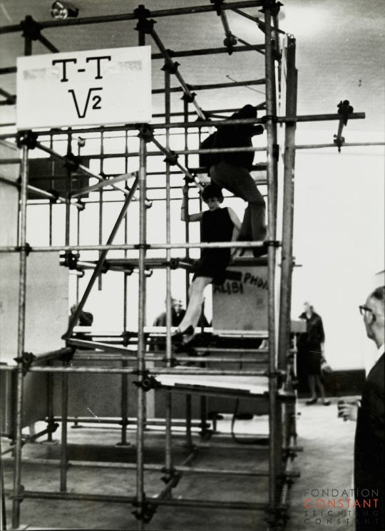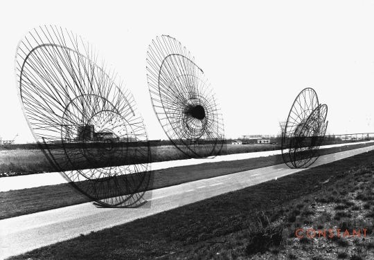 If there was a high point for the radical imagination of a future for the planet, perhaps it was Constant Nieuwenhuys’ New Babylon. Constant was a key member of the Situationist International in its early phase. He started work on New Babylon before he resigned from it, and continued working on it for many years. It embodied many of the situationists’ key ideas about constructing situations for permanent play, but here imagined at the scale of an infrastructure for a planetary utopia dedicated to nomadic play. […]
